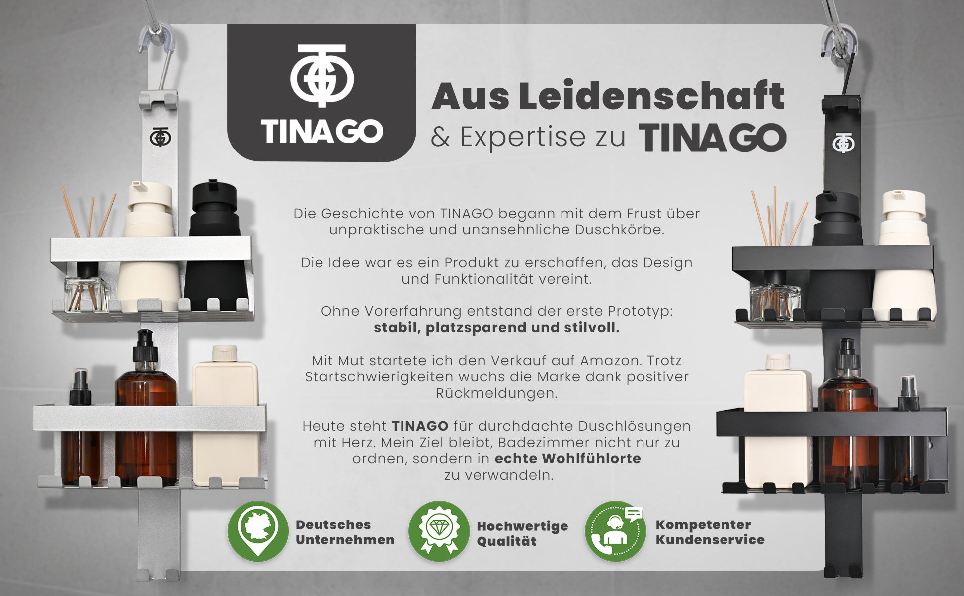 TINAGO Duschablage ohne Bohren Badezimmer Organizer Schwarz